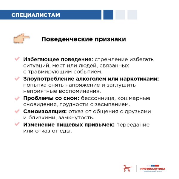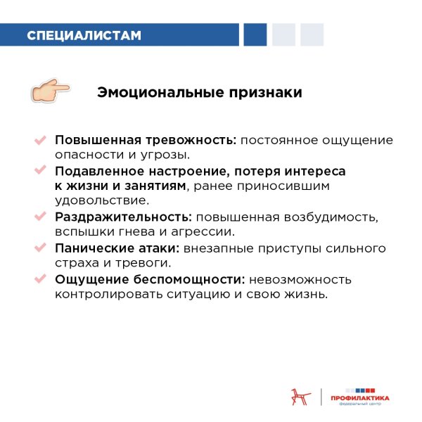 Признаки посттравматического стресса, при которых необходима психолого-педагогическая поддержка читайте в карточках